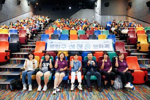 ▲ 류경기 중랑구청장 성평등 영화제 참석자들과 기념촬영 모습(사진제공=중랑구청) © 브레이크뉴스 하인규 기자
