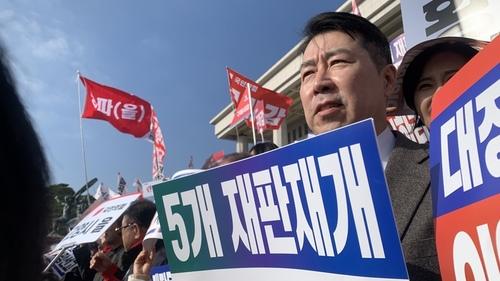 At the rally, People Power Party leader Jang Dong-hyuk criticized the incident, saying, "The prosecution's giving up on an appeal is only the beginning of a campaign to have the indictment against Lee Jae-myung dropped. The day before the Daejang-dong ruling, Lee Jae-myung effectively threatened the prosecution at a Cabinet meeting by saying, 'Do not appeal recklessly.' Lee Jae-myung is at the center of this situation."