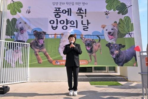(Yangpyeong=Break News, Northeast Gyeonggi Province) Yangpyeong County Council Vice Chairperson Ji Min-hee attended the "Adoption Day" event held at the Yangpyeong County Abandoned Animal Protection Center at 1:00 PM on Thursday, the 6th, to encourage the staff and offer warm support.