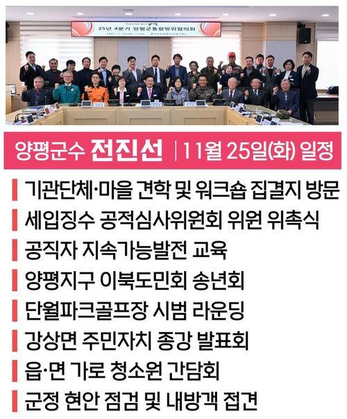Yangpyeong County Mayor Jeon Jin-seon Visits Key Sites on the 25th, Holds a Tight Schedule Including Meetings